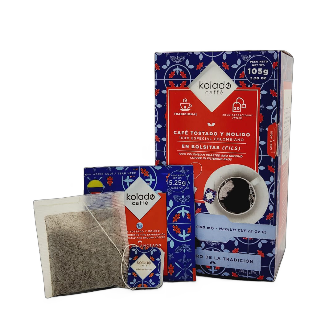 Nuestro café 100% colombiano, tostado y molido no instantáneo está empacado en bolsitas filtrantes individuales, llamadas “fils” que facilitan la preparación en cualquier momento y lugar, ya que no necesitas máquinas, únicamente agua o leche caliente.